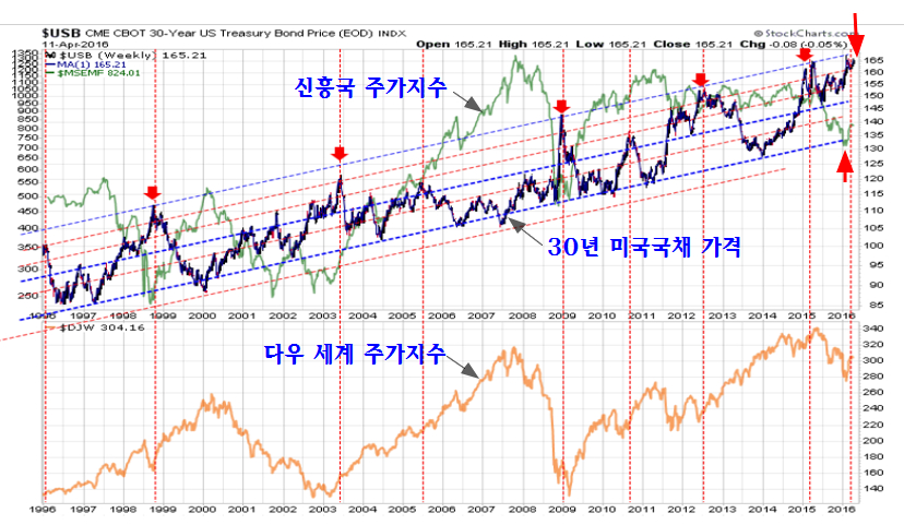유동성 이동 방향이 채권에서 주식으로 자금의 이동이므로 국채가격이 천정권으로 오른 후 재차 하락 전환한다는 것은 주식 시장이 강한 상승을 할 수 있는 유동성 조건을 갖춘다는 것을 의미한다.