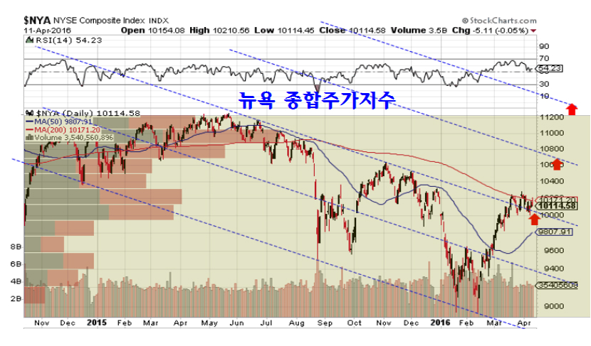 이 때문에 이번 금요일 옵션 만기를 앞두고 박스권 정체하면서 이격 조정을 하고 있는 뉴욕 종합주가지수는 다시 상승을 하면서 11,300선의 다음 목표를 향해 상승을 시작할 듯 하다.