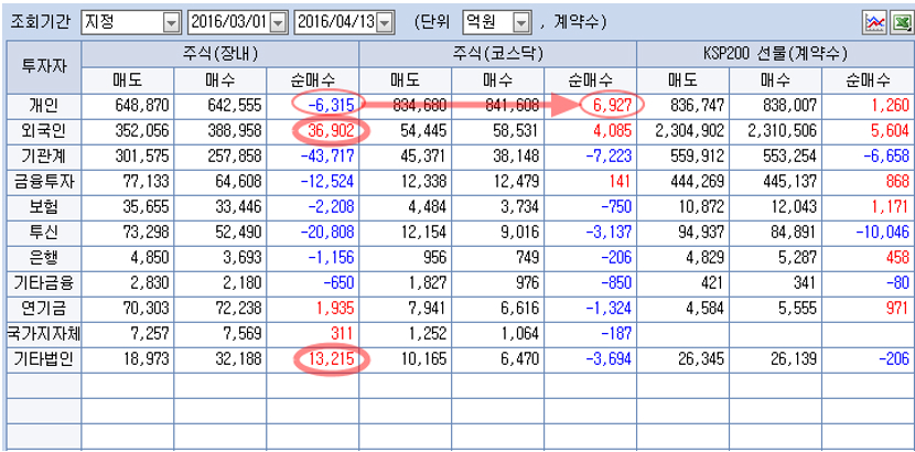 그러나 2월 이후 중국의 경제 회복을 간파한 외국인은 줄기차게 경기 민감주 위주의 주식 매수를 늘리고 있으며, 3월 하순 이후의 조정 국면에서도 이런 기조에 변함이 없다. 주식을 멀리 보고 투자하지 못하고 짧게 보고 도박과 흡사한 매매를 하는 한국의 기관들의 금융 경쟁력은 달리 우간다 수준으로 평가된 것이 아니다.
