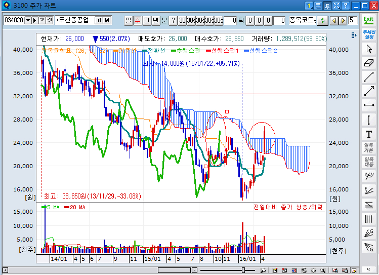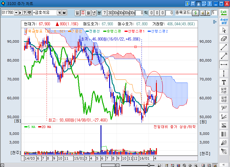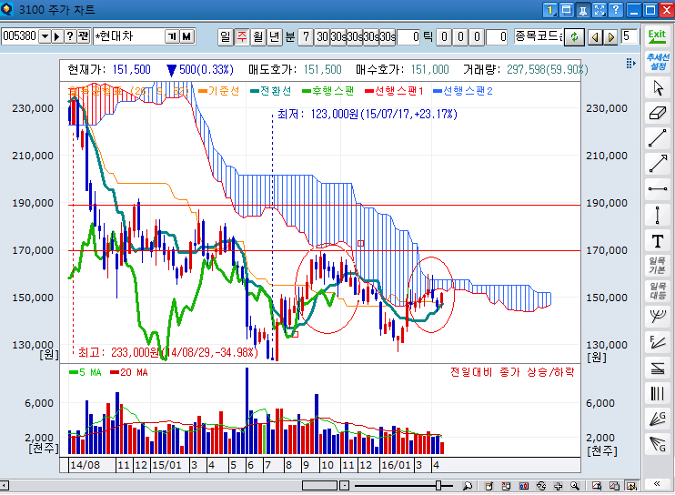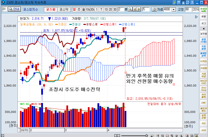 -주봉 중장기 상승추세 진입 분수령 지수대 구름대 상단 확보(1995 돌파 안착)