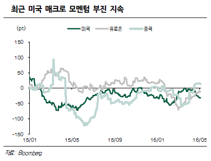 매크로 모멘텀의 약화 등이 맞물리면서 2분기 기업 실적 전망 기대가 약화되고 있다는 점을 주의해야한다.