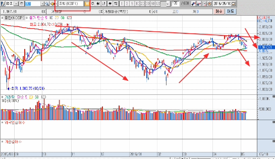 강력한 저항선인 2000선을 돌파한 코스피는 일봉상으로 확연히 꺾어지는 모습을 보여주고 있으며