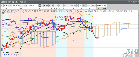 아래로는 이번 만기 이전까지의 반등치였던 247 을 무시하고 확정된 하방 수치(몇차례 저녁무방에서 언급드렸던 수치)까지의 가속으로 두가지 방향에 대한 경우의 수를 모두 살려놓고 마무리하게 됩니다.