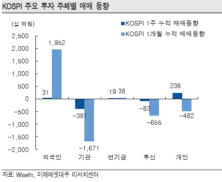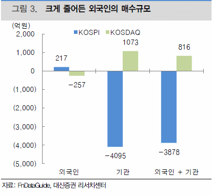 외국인과 기관의 매매동향은 강도면에서는 약화되고 있지만