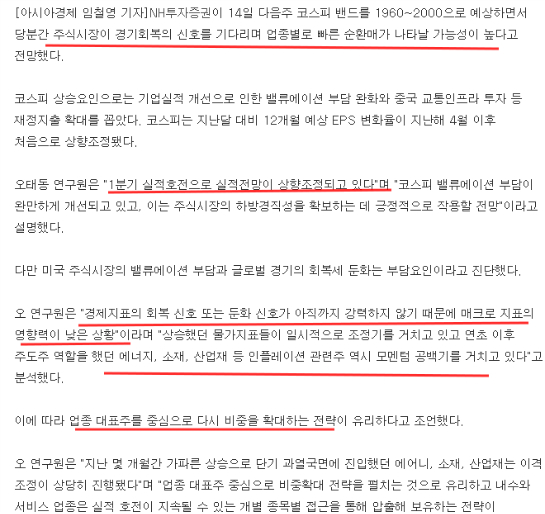 이상에서 보는 바와 같이 시장의 하락 조정을 예상하면서도 "업종 대표주를 매수하라"고 하기도 하고
