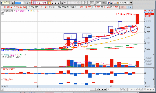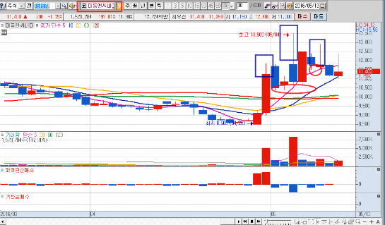 이는 특히 갭으로 급등하거나 점으로 상승한 종목들에서 많이 나오는 주가패턴이라고 할 수 있다.