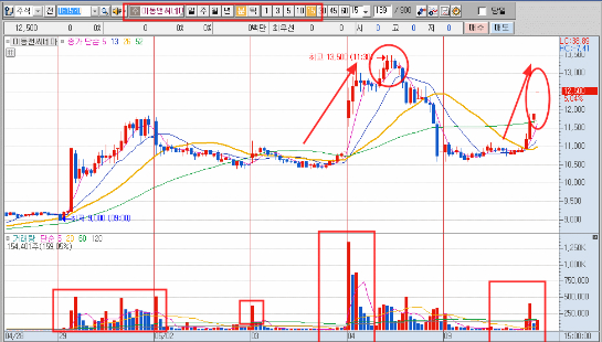 겁먹지 말고 같은 테마들의 흐름을 비교하면서 역발상으로 대응해야 한다.