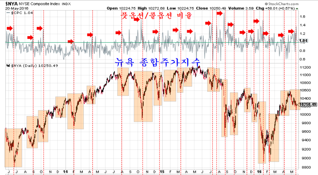 뉴욕 시장을 비롯한 세계 금융시장은 옵션 만기를 앞두고 옵션 시장의 투기적 경향에 따라 하락 변동을 거치지만 만기가 끝난 후에는 원래의 추세로 되돌아 온다. 5월 옵션 만기에도 풋옵션/콜옵션 비율이 1.2를 넘는 과열이 나타나면서 조정이 이어졌으므로, 만기가 끝난 후 원래 추세로 되돌아 가기 쉽다.