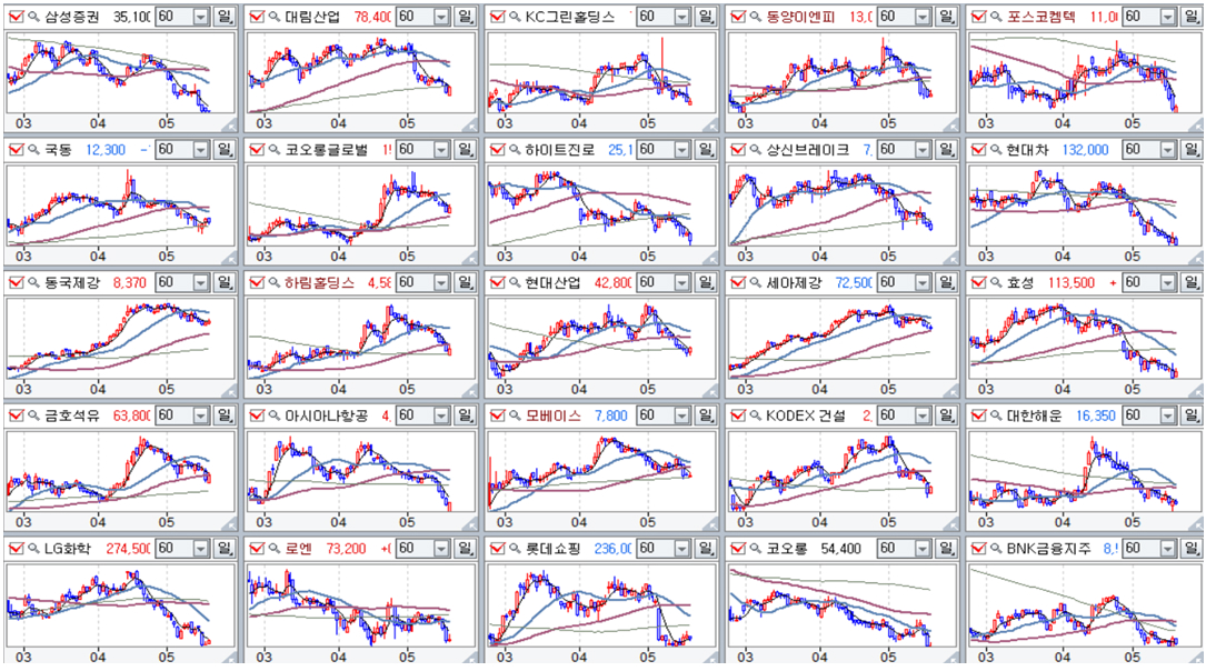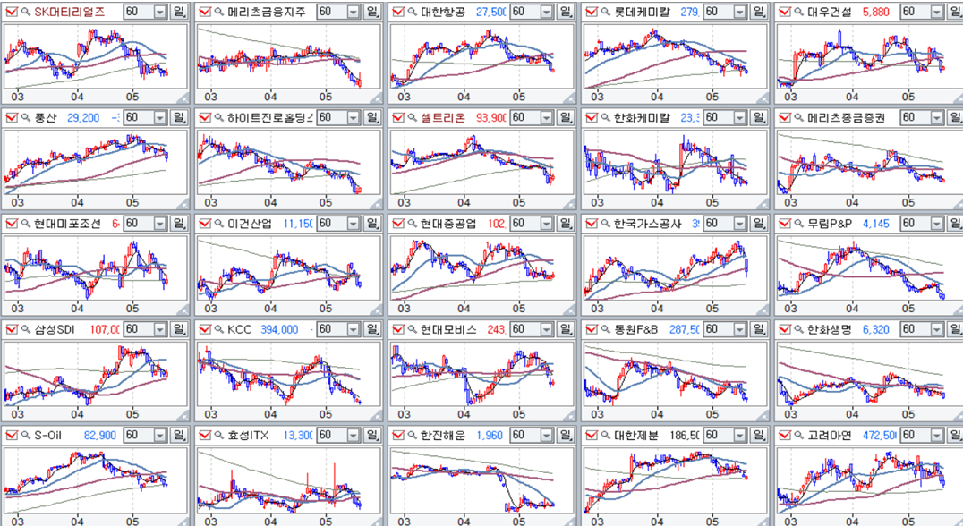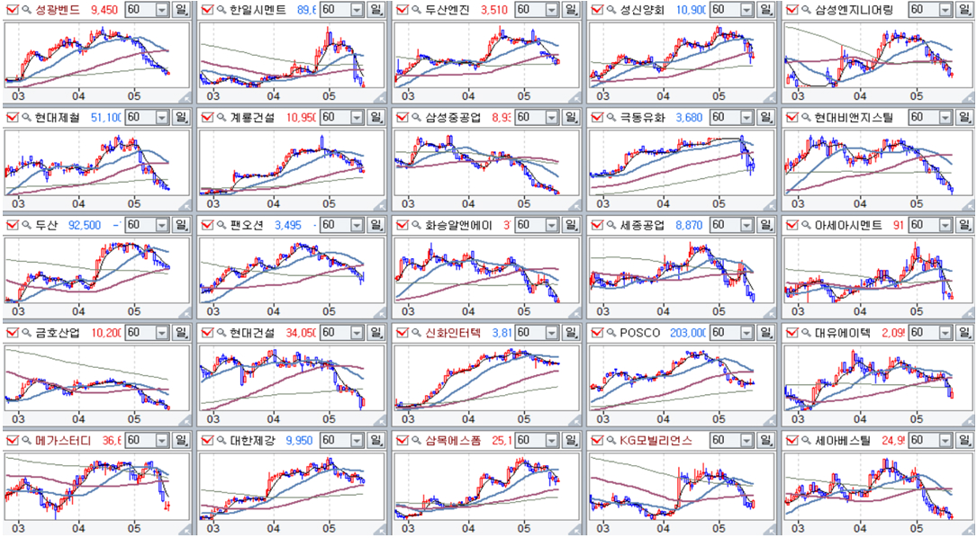 주가는 경기와 펀더멘털에 기반한 장기 추세와 재료, 수급, 심리, 파생상품을 포함한 변동 요인에 의한 단기 변동이 겹쳐서 움직인다. 중국의 주택 및 건설 경기 호전이 이어지면서 주가 장기 추세가 진행되고 있는 가운데, 5월 옵션 만기 변동과 함께 조정이 진행 중이다. 단기 변동보다 장기 추세에 포커스를 두고 투자한 다면 멋진 저가 매수의 기회이다.