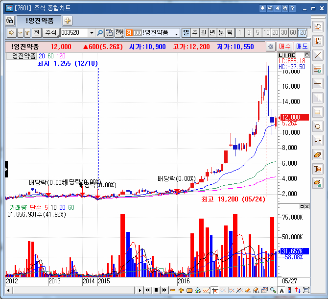시장의 주도주였던 영진약품이 다시 한번 올라갈수 있는 채비를 갖추었는데요.