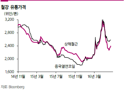 중국 철강가격의 급락으로 인해 국내 철강업체들의 반등 역시 제한적일 수밖에 없다고 본다.
