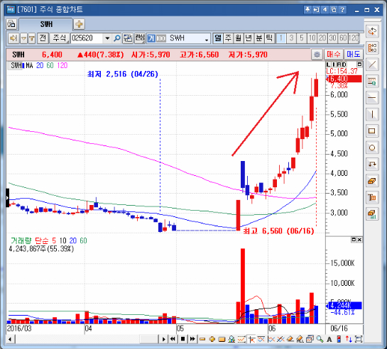 안녕하세요! 여러분의 성공투자 파트너! 급등주 발굴의 대가, 송범선대표입니다! 반갑습니다! 힘든장이죠. 일본은행 총재가 16일 금리를 동결하고 금융정책의 현상유지를 결정했습니다. 이 때문에 오늘 우리 시장은 급격한 하락을 맞았습니다. 사실 독일, 프랑스와 같은 유럽시장이 1% 이상씩 상승해 주어서 오늘 장 초반 시장 분위기는 괜찮았단 말이죠. 하지만 BOJ의 의견이 결정타였습니다. BOJ의 금리 동결은 브렉시트 투표 결과에 따라 엔고·주가하락 추세가 더욱 강해질 수 있기 때문에, 만약의 경우에 대비해 완화 카드를 아껴놨다는 뜻으로 해석되어지죠. 코스피 시장은 6일 연속 하락하며, 시장의 분위기를 암울하게 하고 있습니다. 코스닥은 최근 들어 가장 큰 폭으로 하락하며, 어두운 상황을 부각시켜주고 있습니다. 코스닥에서 오늘 하락하는 종목은 919개나 달하며, 상승 종목 186개에 비해 엄청나게 큰 하락세를 보여주고 있습니다. 이런 날에도 오르는 종목은 오릅니다. 오늘도 우리 정회원 방의 SWH와 키스톤글로벌은 올랐습니다. SWH가 7%, 키스톤글로벌은 3% 올라주며, 역시 가는 놈은 계속 간다는 것을 우리에게 각인시켜 주었죠. 이와같은 대박주 발굴은 계속해서 이루어져야 합니다.