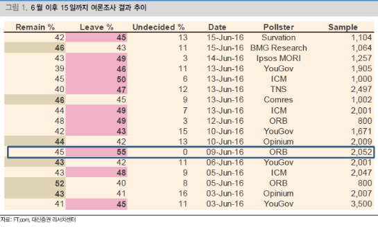 글로벌 증시가 영국의 브렉시트 여론조사 결과에 일희일비하고 있는 것이다.