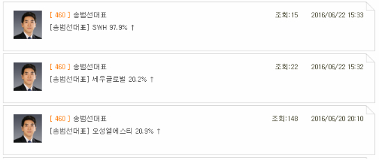 송범선 대표는 최근 3일동안 위의 3종목 매도를 통해 큰 수익을 올려서,