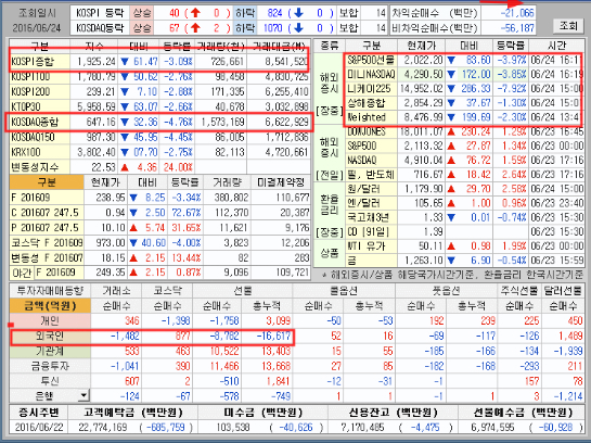 시장은 공포와 충격으로 급락했으며 외국인들의 대규모 선물매도와