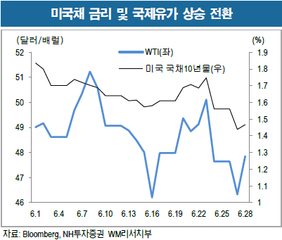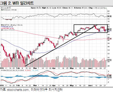 WTI는 브렉시트 충격 완화로 박스권 하단에서 반등에 성공하는 모습이다.