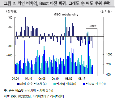 반복되는 패턴을 감안하면 외인 비차익 순매도가 다시 늘어날 수 있으며
