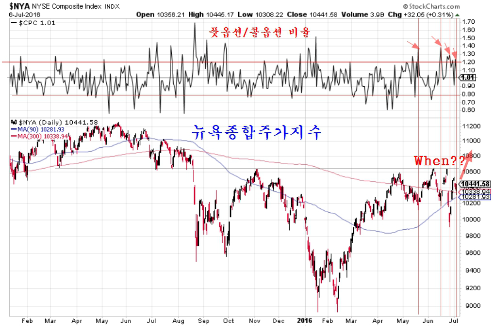 전날 풋옵션/콜옵션 비율이 1.24로 풋옵션 포지션이 과열되며 하락했던 뉴욕시장은 6일밤 반등으로 마감했다. 뉴욕 시장은 풋옵션/콜옵션을 보면 유난히 변동이 심하다.