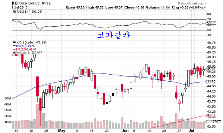 다음 미국의 주요 대기업의 주가를 비즈니스 적인 관점에서 길게 본다면 멋진 투자의 수단이 될 것이다. 실제 미국인은 1980년 이후 퇴직금을 주식에 적립하는 제도를 도입함으로써 이 기업의 성장은 미국인의 노후를 여유롭게 하고 있을 뿐 아니라 코카콜라는 워런버핏에세 오마하의 현인이라는 명예로운 칭호를 선사하기도 하였다.