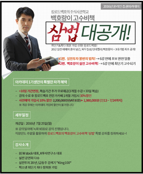 킹백 아카데미를 통해 투자자분들을 만나뵐 킹로드 백호입니다.