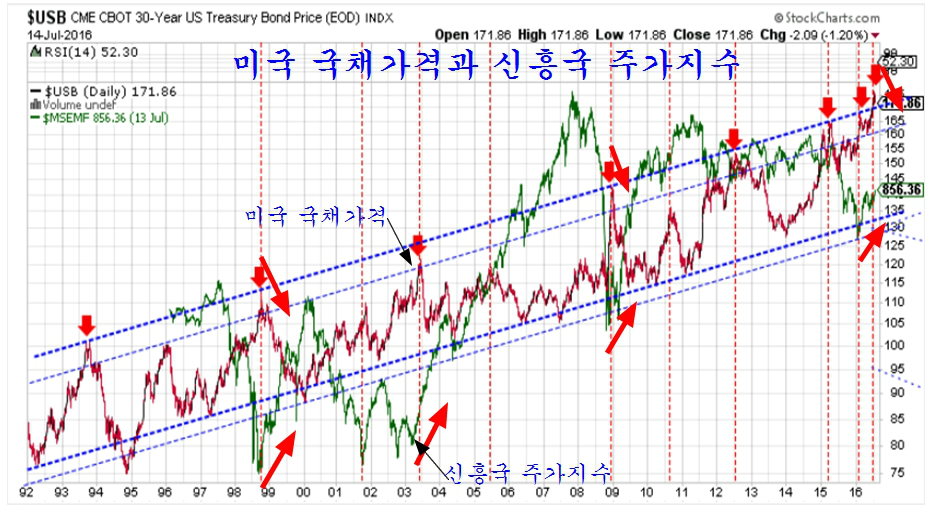 특히 이런 주가의 상승이 그간 FRB의 계획하에 과도한 수준으로 오른 미국 국채가격의 하락과 함께 진행되고 있어 그 수급적 의미가 크다.