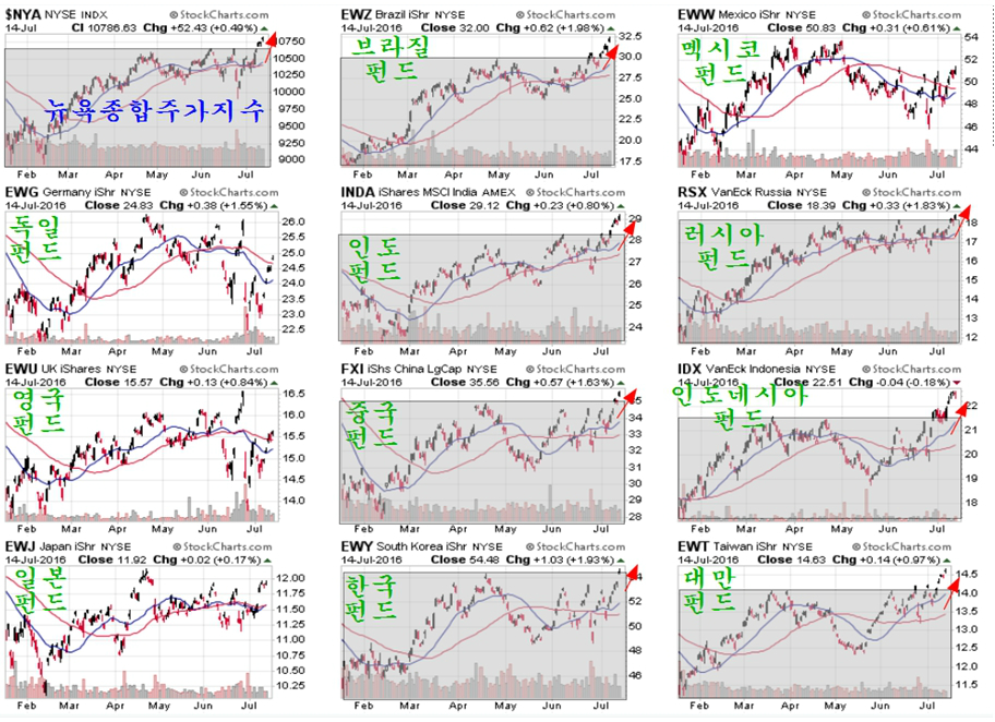7월 둘째주 세계 증시는 작게는 2015년 8월 이후 12개월만에, 크게는 2011년 4월 이후 63개월 만에 증시의 하락 추세를 상승으로 되돌리는 변화가 나타났다.