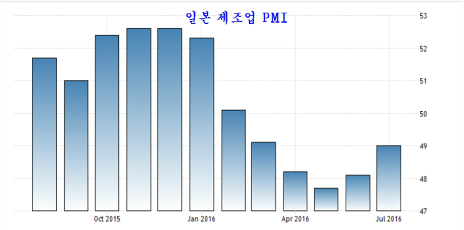한편, 유로존을 포함 세계 4위권 경제인 일본도 제조업 PMI가 확장국면인 50을 넘지 않았지만 점차 상승하면서 경기 회복을 보이고 있다.