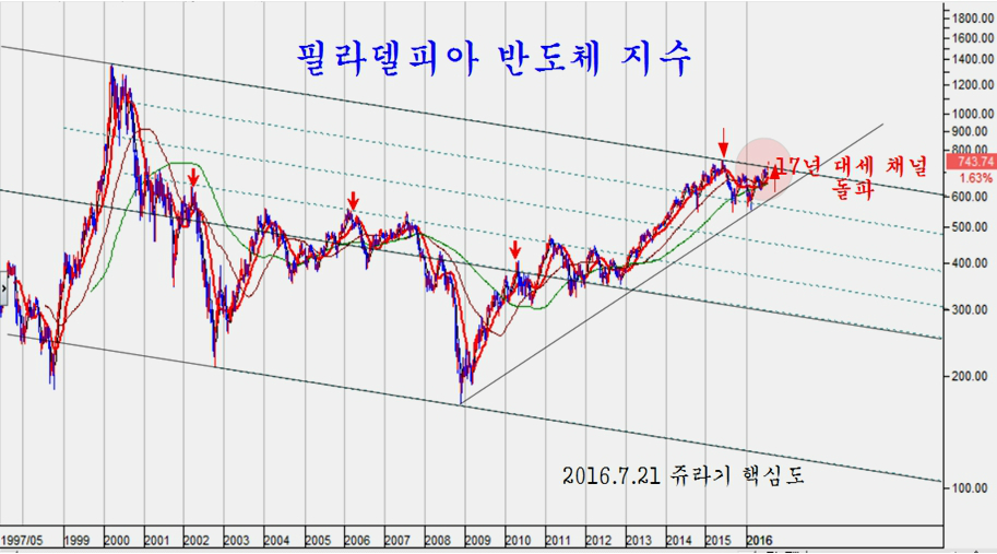 경기 선도 업종인 기술주는 반도체 지수가 17년 추세 채널을 위로 돌파하며 17년 만에 새로운 기술주 붐을 준비하고 있다. 1998년