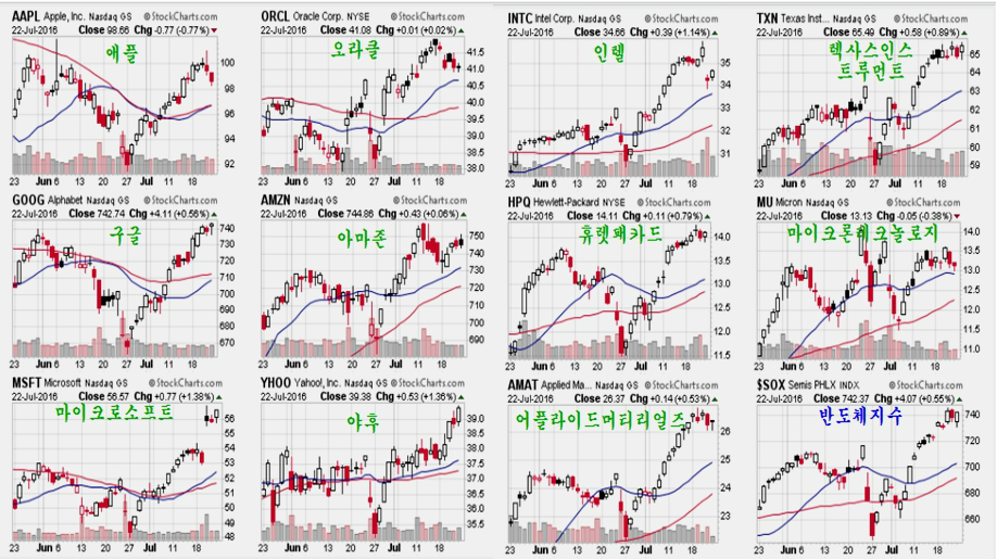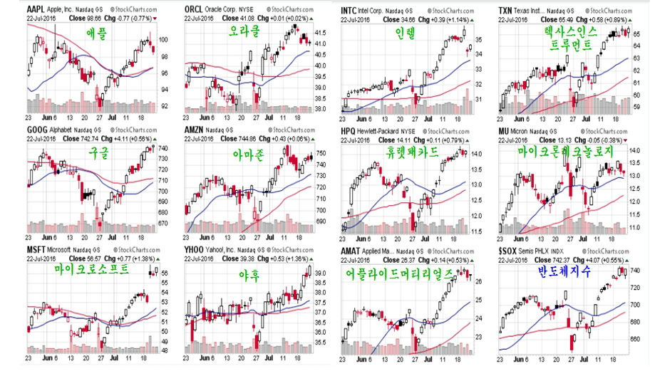 삼성전자나 LG디스플레이가 상승으로 움직이며 종합지수를 리드하는 것 역시 이런 세계 시장의 흐름에서 보면 알기 쉽다. 중요한 것은 기술주는 세계 경기에 앞서서 업황이 회복되어 경기를 선도하며, 지금은 장기 위축되었던 세계 경기 회복과 함께 새로운 기술주 붐이 시작되고 있다는 점이다.