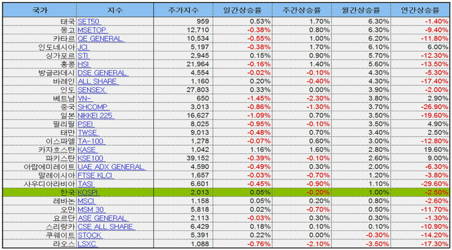 수출 중심의 아시아 시장만 놓고 보면 태국, 인도네시아, 싱가포르가 6%대 상승을 하고, 중국, 대만, 일본, 베트남의 한국 경제구조와 비숫한 나라가 3%대 중반의 상승을 하는 사이 한국은 1%대 상승으로 중동의 원유 아니면팔 것이 없는 나라를 제외하면 꼴찌이다.