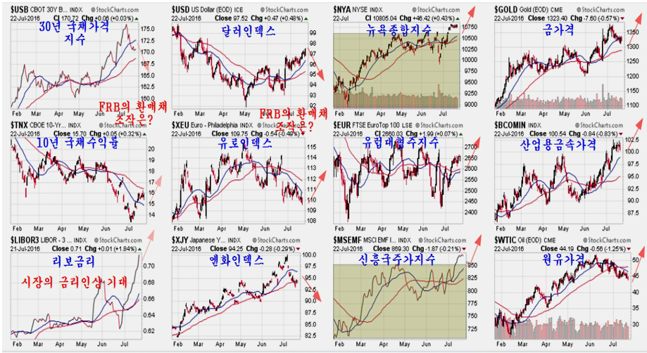 이와 같은 세계 경기의 회복에 힘입어 세계 금융시장은 주가와 상품가격이 오르고 있으며, 7월 둘째주 역헤드엔쇼우더 패턴의 네크라인(Neck Line)을 돌파한 데 이어 셋째 주에는 숨 고르기와 함께 재차 상승을 할 준비를 하고 있다.