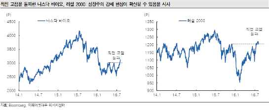 미국 나스닥의 상승주역이 바이오이며 기술주들이 중심에 있고 중소형주 중심의 러셀지수도 상승탄력이 매우 강하다