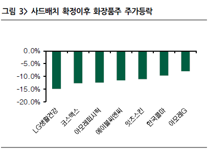 사드배치 확정이후 중국의 규제강화 우려와 수출 제한 등으로 하락하는 화장품과 콘텐츠 엔터주들은