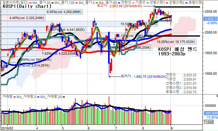 고치 내지 사상최고치에서 소폭 일진일퇴 하는 조정의 모습을 보이고 있으므로 국내시장 역시