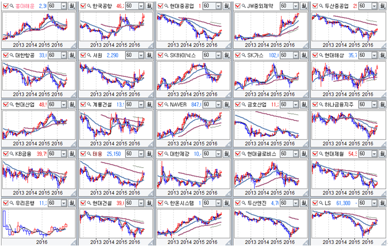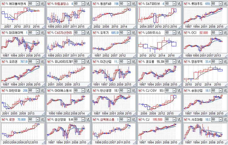 쥬라기: 월봉의 장기 추세로 보는 기업들의 주가는