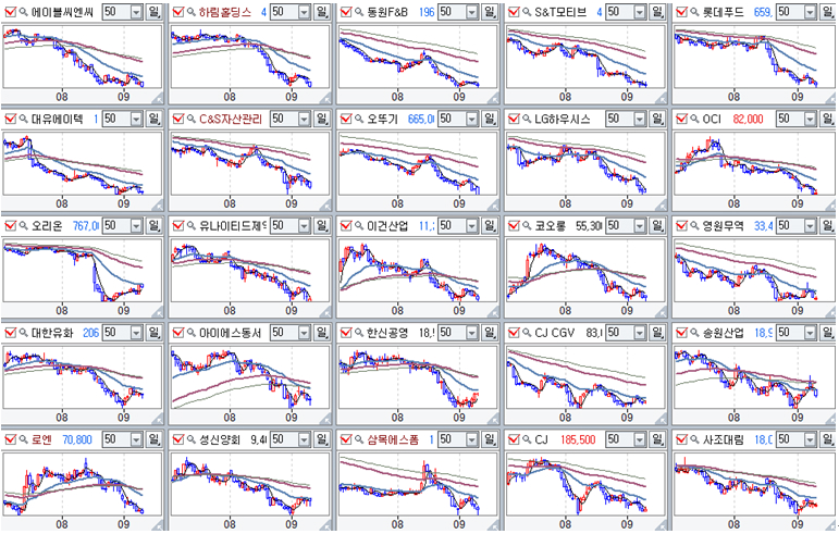 쥬라기: 이렇게 하락한 기업들은 지수의 모습과는 달리 과매도권에서