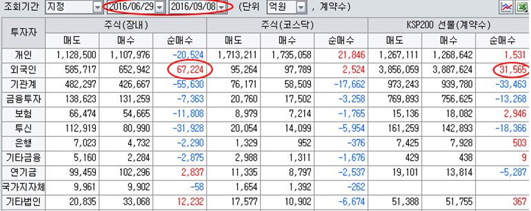 쥬라기: 주식이 6조 7224억원 선물 3만 1585계약입니다.
