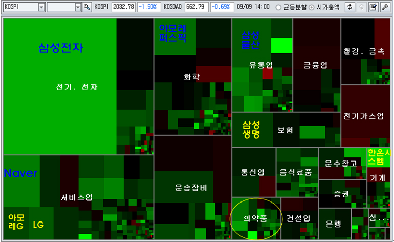 쥬라기: 시장을 이 등락 지도로 보면 지수가 크게 밀린 것은