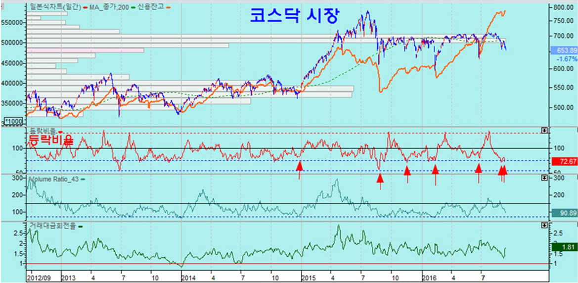 실상 지수는 삼성전자의 상승과 더불어 상승의 모습을 하고 있지만, 거래소와 코스닥의 많은 기업들은 2015년 7월을 고점으로 1년 넘게 장기 하락한 기업이 많으며, 일부 기업은 지난 4월을 고점으로 5개월째 조정을 받고 있거나 7월 중순 이후 2개월째 조정이 이어지고 있다. 이런 기업들은 대부분 중기 조정의 바닥권으로 보이며 긴 조정을 끝내고 상승을 준비하고 있는 것으로 보인다.