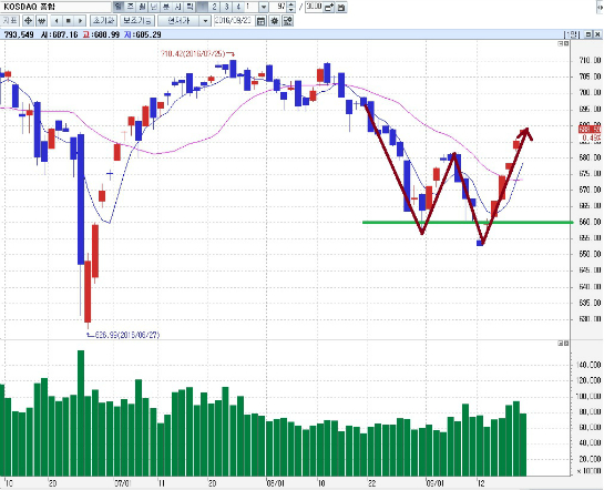필자는 추석 연휴 이전에 투자전략글 및 장중 공개 방송에서 2가지를 사전 예고드린바 있다. 코스닥 지수가 660포인트를 하향하면 오버슈팅의 성격이 된다는 점과 추석 연휴 이후 지수가 반등의 시그널을 갖고 있다는 점, 그리고 코스닥의 지속되는 기관 매도가 매물 공백을 불러오면서 급반등을 만들 수 있다는 점였다. 현재까지는 필자가 예상했던 흐름이 그대로 진행중이다.