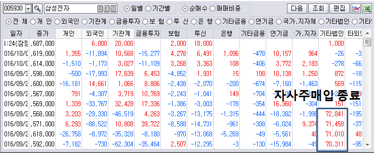 삼성전자의 주가는 지난번 겔럭시 노트7 사태 이후 조정을 보이다가 최근 기관, 연기금의 순매수