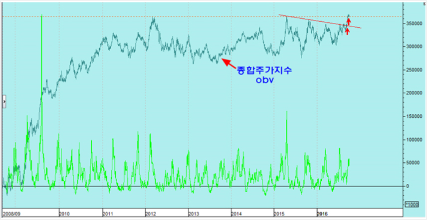 2016.10.4 주식 시장 거래량 지표 장기 바닥 신호와 obv지표로 부는 상승 출발 신호 쥬라기의 세상을 보는 창
