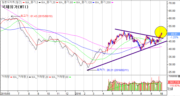 산에 합의하면서 10% 이상 상승세를 보인바 있는데 러시아도 공급과잉 해소에 힘을 보태는 발언을
