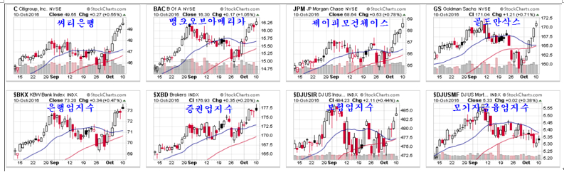 미국 시장에서는 경기 회복기 경기 선도 업종인 광산업 (전통산업)과 기술주(첨단산업)이 상승을 선도하고 있고 엑슨모빌과 함께 금융주가 활발한 모습을 보이고 있다.