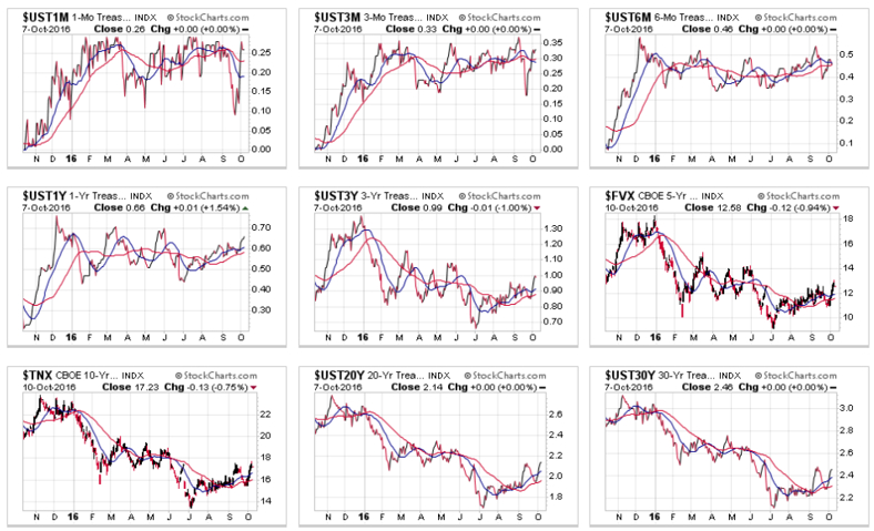 만기별 미국 국채 수익률(금리 : 국채가격과는 반대로 움직임)의 움직임은 다음과 같다.
