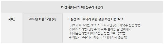 이런 궁금증을 일부 해소시켜 드리기 위해 태자아카데미를 개설했습니다. 이런 저런 이야기만 듣고 마치 마법의 기법 같은 강의가 아닌 투자 성공 확률이 높은 사람들은 과연 어떤 부분에 노력을 집중하고 있는지 등 등 실전용 투자 노하우를 전달해 드리고자 합니다.
