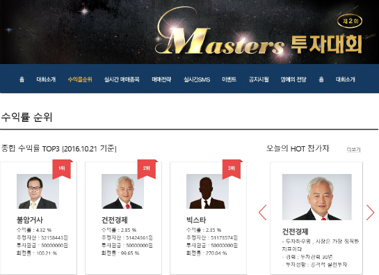 팍스넷 전문가들이 참여하는 제2회 마스터 투자대회에 1위를 달리는 불암거사는 가입회원들의 연 목표수익율을 100%로 잡고있다