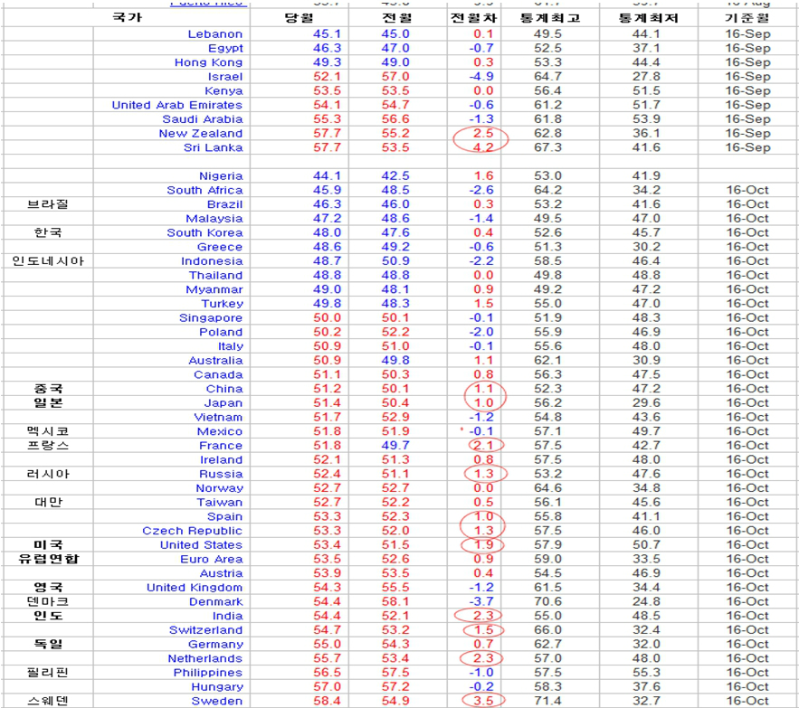 아마도 2011년 세계 제조업 경기가 둔화되기 시작한 이후 가장 많은 국가의 제조업이 회복으로 보이며, 실로 5년 만에 세계 제조업의 회복 국면이다.