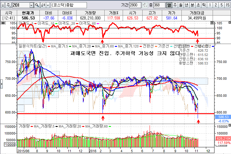 인다. 코스닥지수 기준 장중 현재 580 라인은 분명 과매도 구간이다.