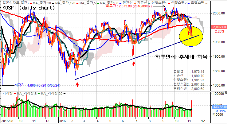 국내증시 역시 코스피지수가 2.26% 급등, 코스닥지수가 3.92% 급등하면서 전일 낙폭을 하루만에